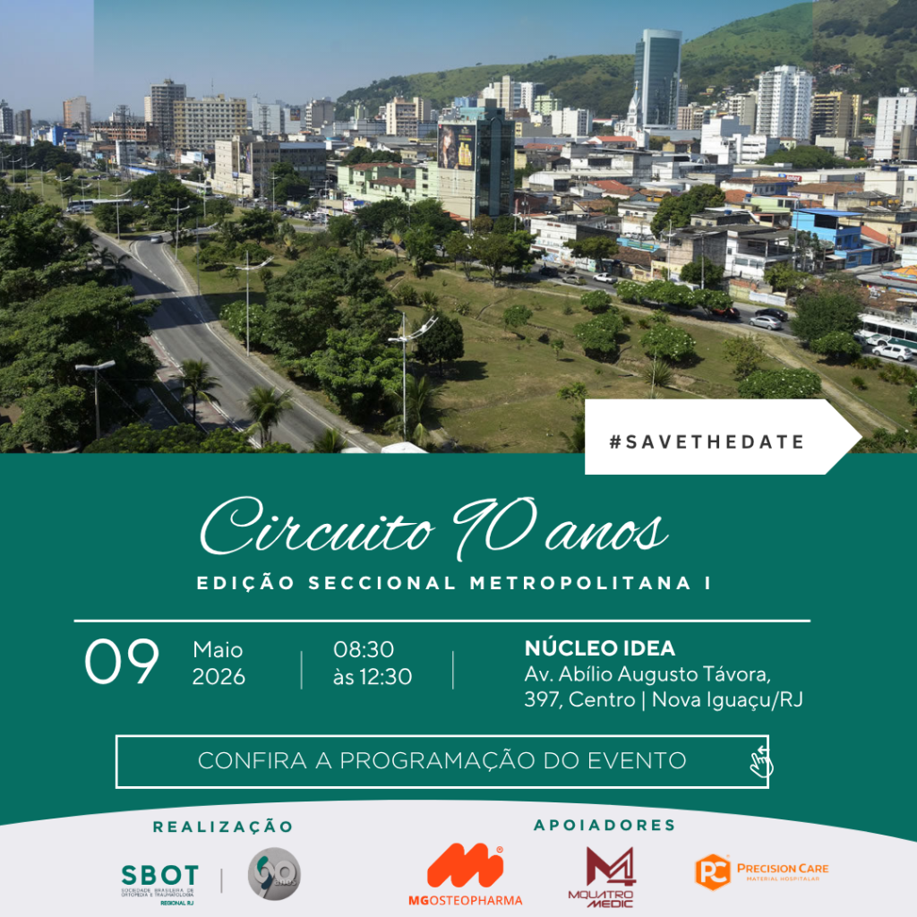 No dia 09 de maio, teremos a Edição da Seccional Metropolitana I do Circuito 90 anos da SBOT-RJ. O evento irá acontecer no Espaço Núcleo Idea, localizado no centro de Nova Iguaçu e reunirá especialistas, gestores e lideranças da Baixada Fluminense para valorizar a trajetória e discutir os rumos da Ortopedia, reforçando a importância da […]